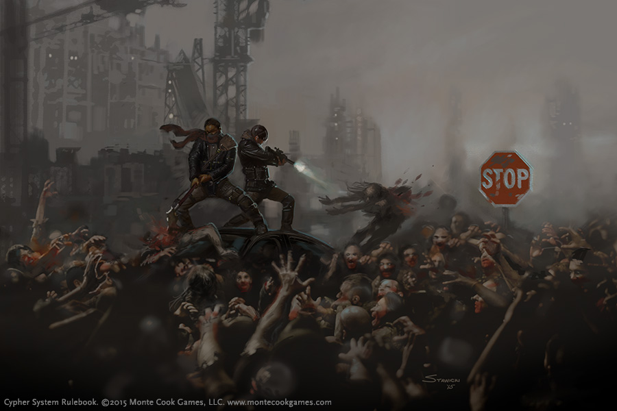 Post-Apocalyptic: What can I say about this one? It’s been covered by RPGs, books, TV shows, movies, and games. For centuries people have discussed and considered the fall of civilization. So, what does that mean in the Cypher System? Well, just like with any other genre, the first thing you need to consider is time frame and technological level. Second, you need to decide what kind of threats your PCs have to face in the form of creatures or other people. Third, you need to decide how scarce or plentiful resources are, food, water, safe shelter.