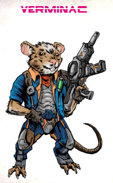 This book starts with the story of how you came to be on Rust, then you go into acquiring a few gear pieces of your history to fit the thematic of the RPG. This system uses a d100, a d10 and a percentile dice, which is a nice change from the standard d20. The character creation is clean and easy to follow. It starts with an acronym of SPACE, (Strength, Perceptions, Agility, Constitution, Education) along with a sentence for what each attribute stands for. When you start into character creation, the first thing you’ll notice is the table under Creator. That helps you populate Rust and gives you the option of randomly generating your character’s race. The races are in a word, awesome. You get seven to choose from or randomly generate. The pictures are adorable and fitting with the theme of the rest of the book.